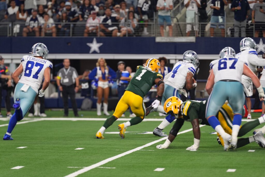 Dem Boyz battle back from down 7-0 in the first and 13-0 until the Packers extra point was blocked by the Cowboys and returned for 2 points giving new life to Cowboys. Dallas scores two more time to take a 16 – 13 led at the half. Cowboys gain the momentum through out the second half. Packers struggled to get within field goal range to tie the game at 37 all sending it into overtime. Both place kickers from each team Brandon Aubrey and Brandon McManus trade field goals to end overtime at a 40-40 tie.